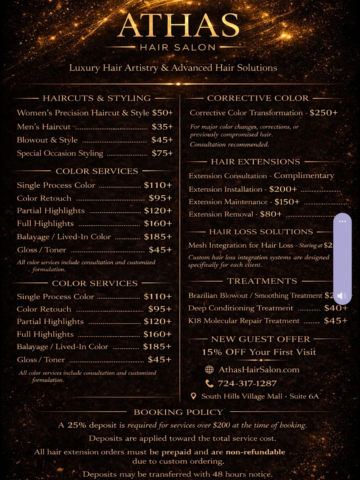 When Messaging please provide name, phone, and services your asking about. Please note some Services require $50 non refundable deposit. This depends on the amount of time that is needed to complete the service. If there is a no-show or cancellation of any appointment less than 24 hours in advance, $25 will be added to the next appointment.